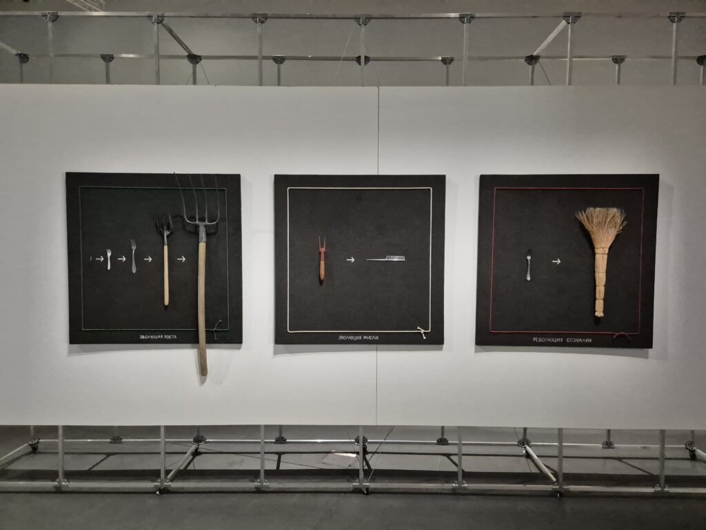 Стенды каждой пары художников объединяются в своеобразные инсталляции, внутри которых происходит взаимодействие между работами авторов. Так, например, воспринимаются произведения «Пулоты» Рустама Хальфина и «Пальцевой орнамент» Лидии Блиновой. Абстрактная композиция оказывается иллюстрацией пространства, созданного руками художницы, что отражает невероятно крепкую связь художественного семейного союза.