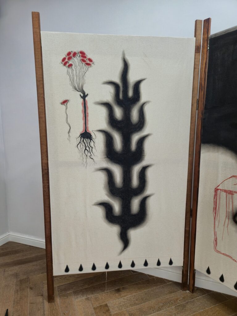 Прежде чем, говорить про новые представленные работы, стоит вспомнить персональные выставки художниц, прошедшие в 2024 году («Сны в подземном мире: о выставке Меруерт Кунаковой», «Почему пугающие образы Аружан Жумабек притягательны?»).