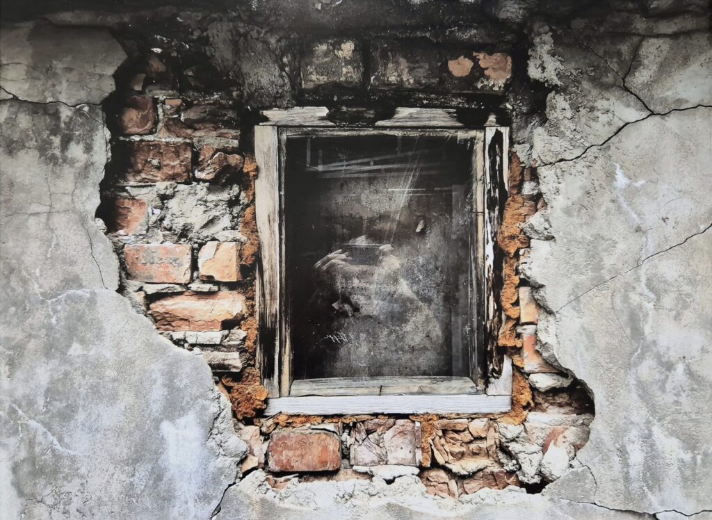 Художник и сам хотел стать частью архива городской памяти Алматы. На фотографии «Археологический автопортрет» мы видим нечёткие черты его фигуры в отражении очередного окна. Композиция выстроена так, что создаётся впечатление, что художник смотрится в старинное зеркало в огромной раме. По факту же, он опять играет с пространством и временем, помещая себя между стеклом и комнатой, памятью и изображением.