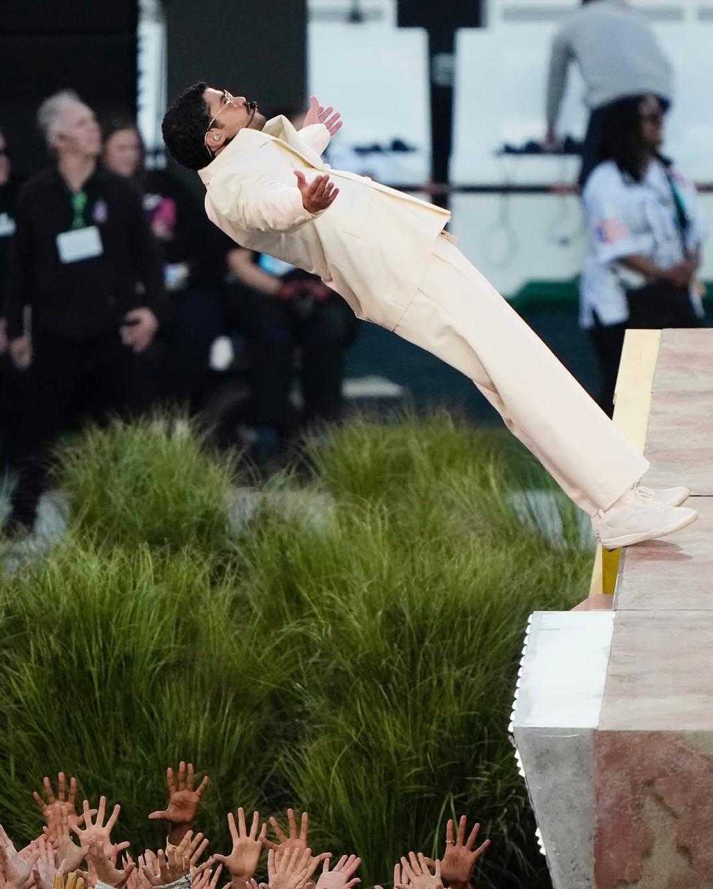 Само выступление длилось 14 минут. За это время он исполнил все свои главные хиты и даже разделил сцену с другими артистами, которые захотели поддержать такое сложное и обсуждаемое выступление. Вместе с Bad Bunny на сцене появились: Рики Мартин, исполнивший свой хит Livin’ La Vida Loca, Леди Гага, спевшая Die With A Smile, а также Педро Паскаль, Carol G, Cardi B и Джессика Альба. На выступление царило всеобщее настроение праздника.