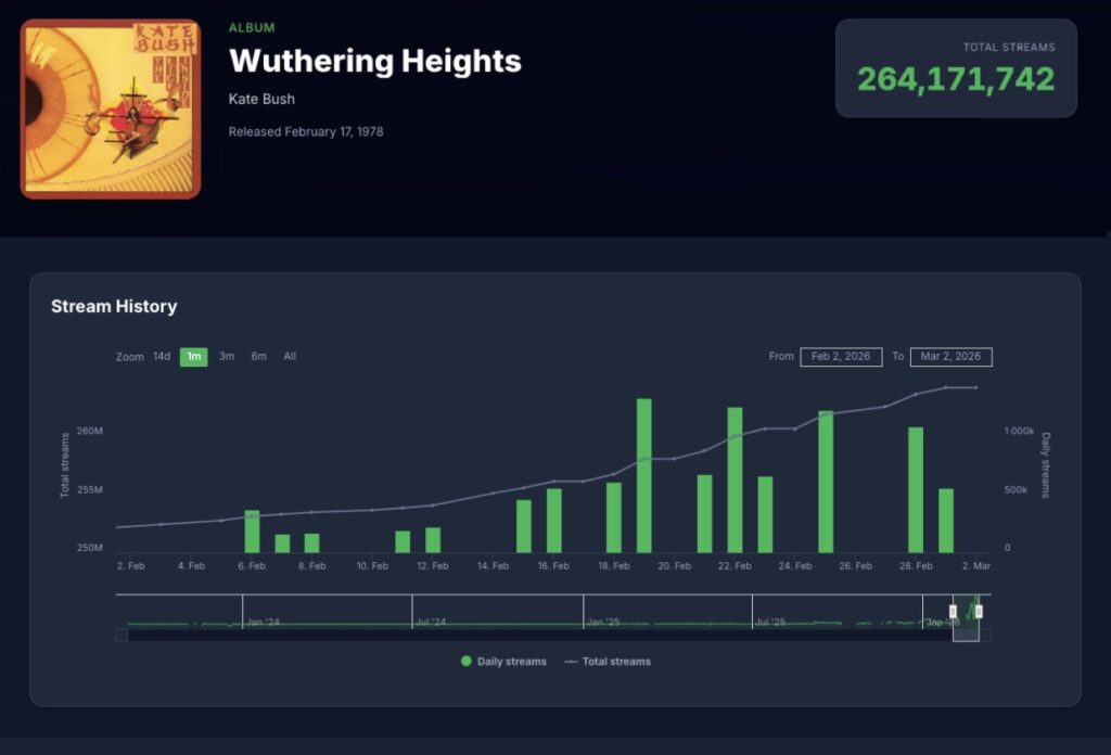 Этой весной Кейт Буш вновь ворвалась в тренды и чарты со своим дебютным хитом 1978 года «Wuthering Heights». Несложно сложить 1 + 1, чтобы отгадать источник новой волны популярности — в феврале состоялась премьера адаптации «Грозового перевала» Эмеральд Феннел. Несмотря на то, что в вызвавшем неоднозначные реакции фильме композиция Буш не прозвучала, она тем не менее завирусилась в интернете, и даже не всегда в роликах, связанных с кинолентой или романом.