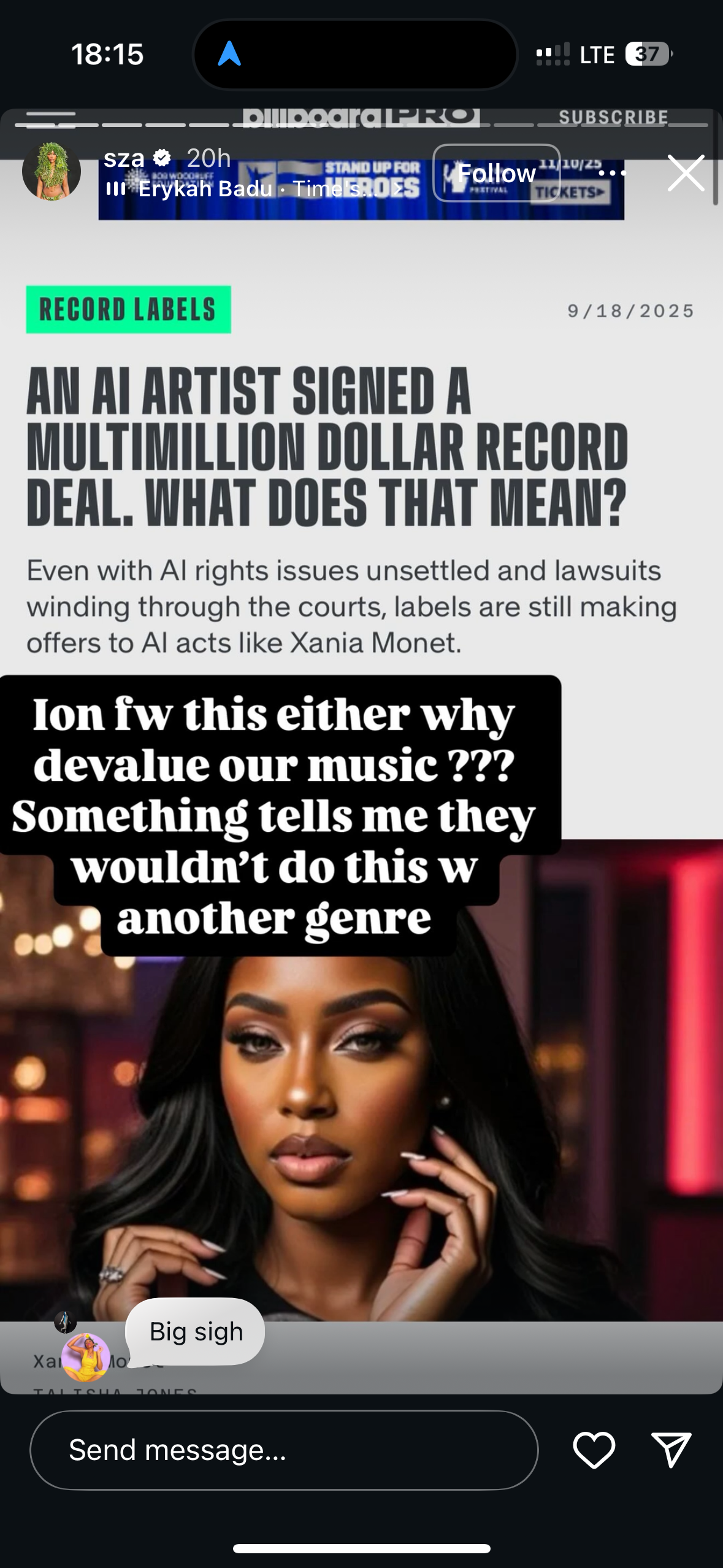 Несколько дней назад ИИ-артистка Xania Monet подписала многомиллионный контракт после переговоров с несколькими лейблами. Теперь вся музыкальная индустрия реагирует на это беспрецедентное событие — в том числе Кейлани и SZA.