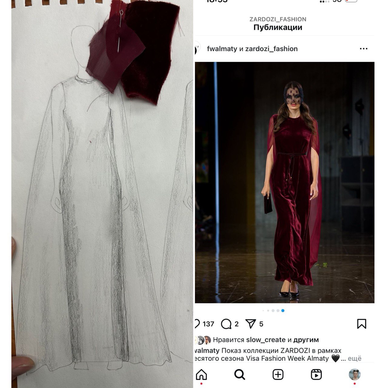 По её словам, ещё во время первых обсуждений будущей коллаборации она спрашивала о возможности посмотреть изделия на макете — тогда с ней согласились. Однако позже, рассказывает Салтанат, после предоставления эскизов конструктор Zardozi заявила, что бренд работает без примерки и сразу шьёт на «готовое» — на размер L. Это само по себе странно: L — не стандартный размер, который обычно создаётся для моделей, выходящих на подиум. Проверка изделий на макете, подчёркивает дизайнерка, по-особенному важна — она позволяет дизайнеру увидеть вещь в почти готовом виде и поправить, добавить или изменить какие-то детали. Такую возможность Салтанат, как дизайнерке, не дали.