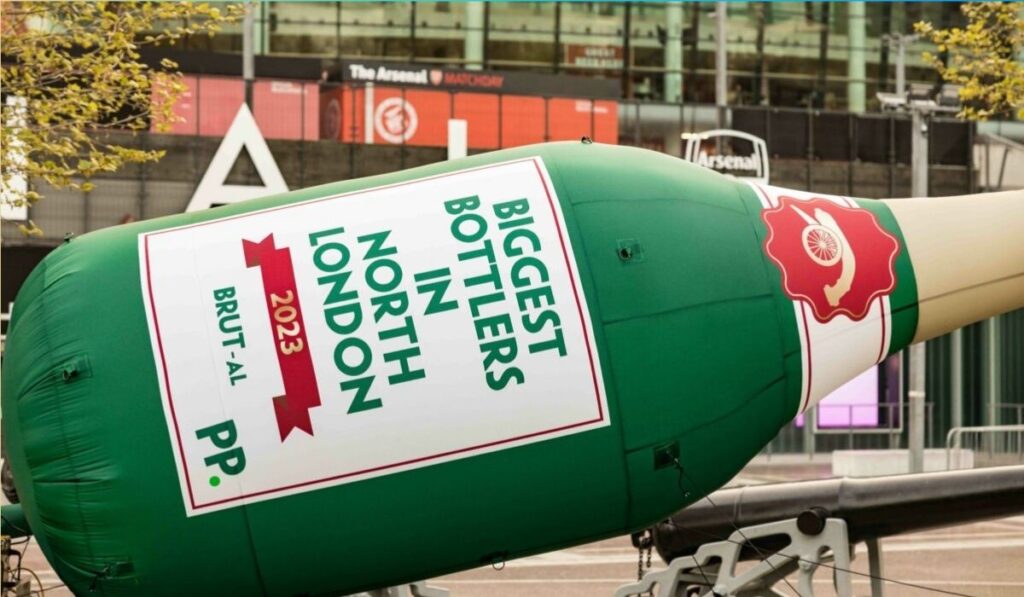 Одним из самых ярких эпизодов стал перформанс ирландской букмекерской конторы Paddy Power. Букмекеры доставили прямо к стадиону «Эмирейтс» гигантскую надувную бутылку шампанского высотой 5,5 метров. Надпись на ней гласила: «Biggest bottlers in North London in 2023» (Главные «ботлеры» Северного Лондона в 2023 году).