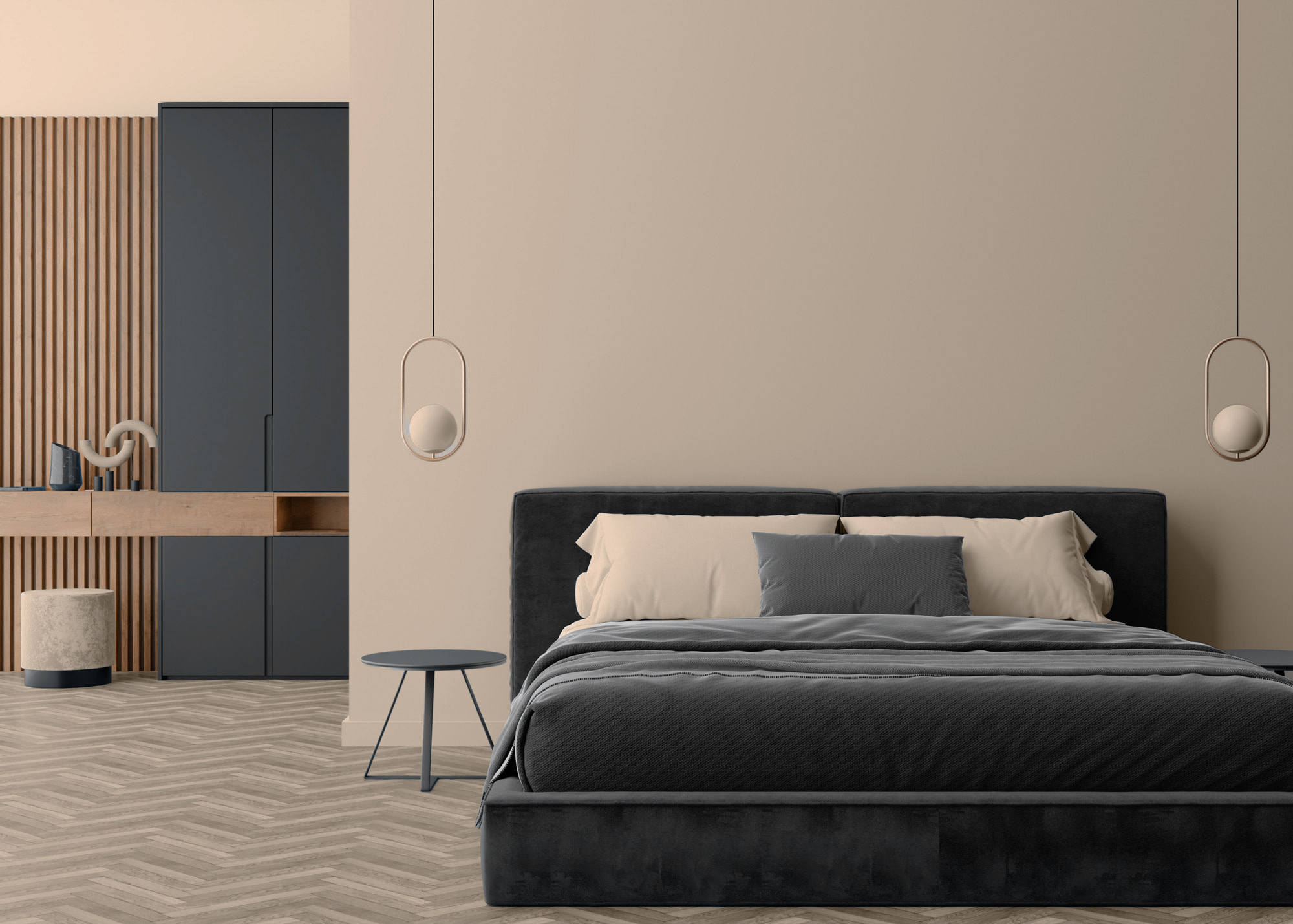 В интерьере Grotto добавляет пространству глубину и свежесть. Он гармонично смотрится рядом с тёплыми оттенками дерева, песка и глины — создаёт баланс между теплом и прохладой. Особенно эффектен в сочетании с латунными акцентами или матовой керамикой.
