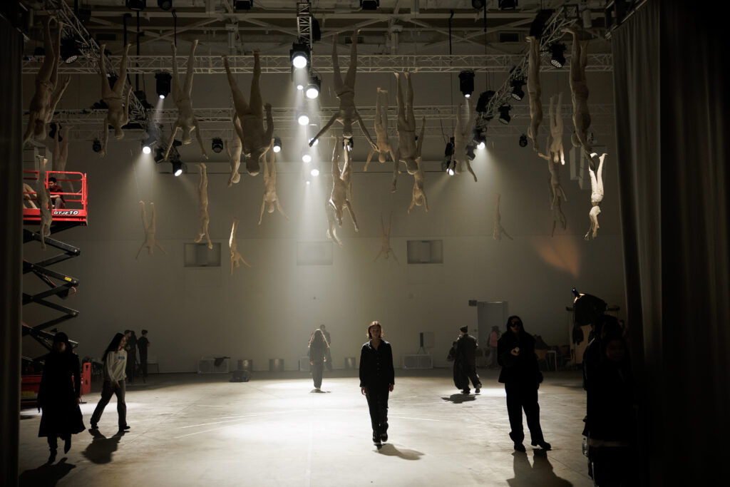 Первым возник не сценарий начала, а финальная сцена — кульминация, в которой движение становится почти хаотичным, а из общего ритма возникает центральная фигура. Этот образ отсылает в « Сотворению Адама» — точке возникновения контакта. Вся драматургия показа выстраивалась как движение к этому моменту, то есть путь назад — к источнику.