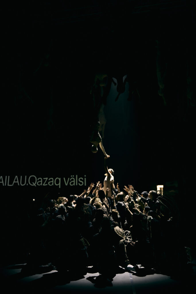 Хореография объединила элементы классического вальса, fashion-voguing и пластики казахского танца. Эти слои движения соединялись и деконструировались внутри одной композиции, формируя новый язык — тот самый казахский вальс, который команда искала на протяжении всего процесса: