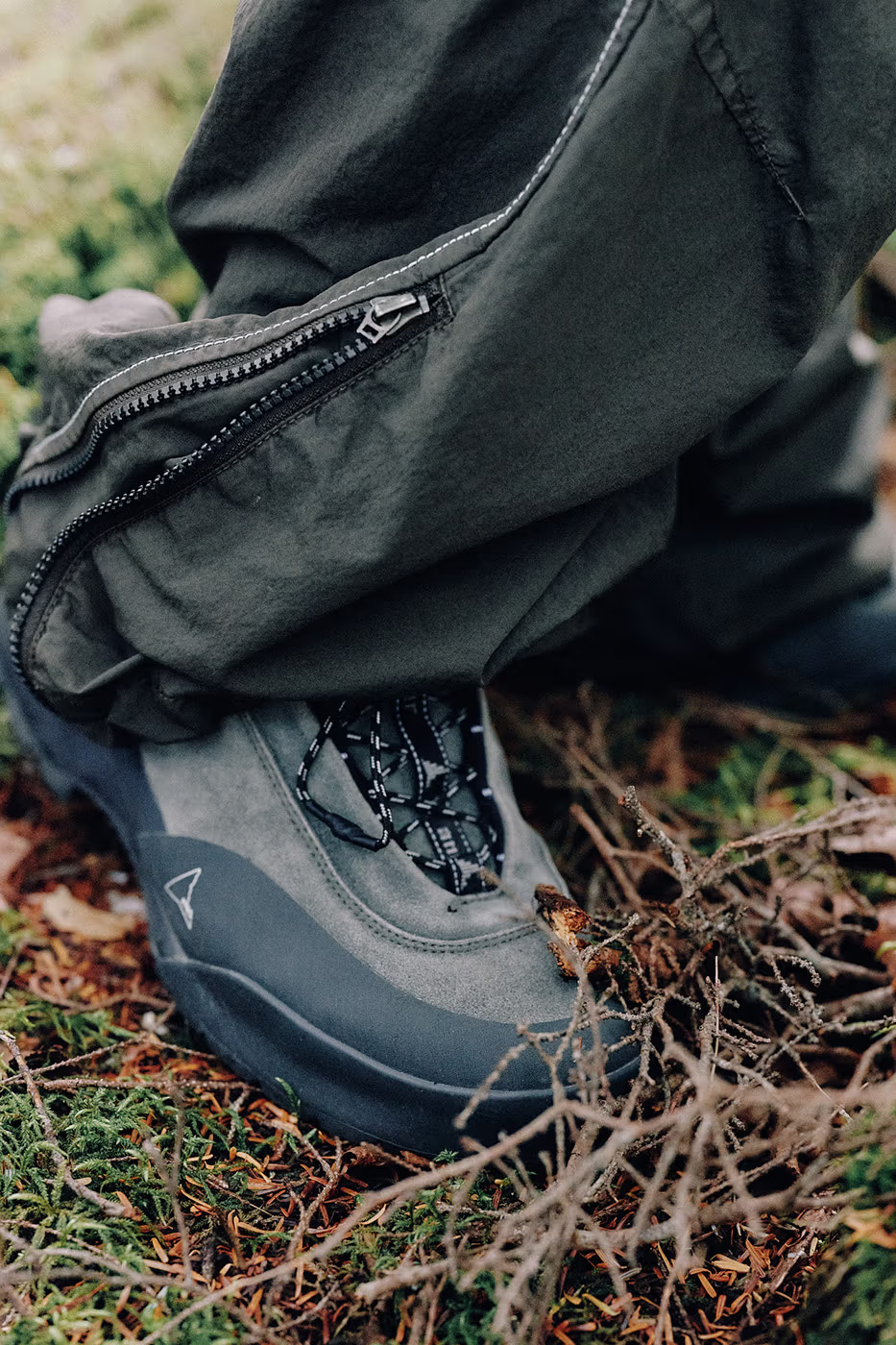 Почти все модели ROA строятся вокруг фирменных подошв Megagrip (отсюда и модный жёлтый логотип на ботинках), которые обеспечивают устойчивость и сцепление с поверхностью при любых погодных условиях. Вместе с Vibram они выпустили несколько проектов, самый заметный — капсула CAVE. В неё вошли переработанные версии моделей Andreas и Katharina. Обе пары созданы из плотной ткани, замши, усиленных боковых панелей, и, конечно, технологичной подошвы Vibram.