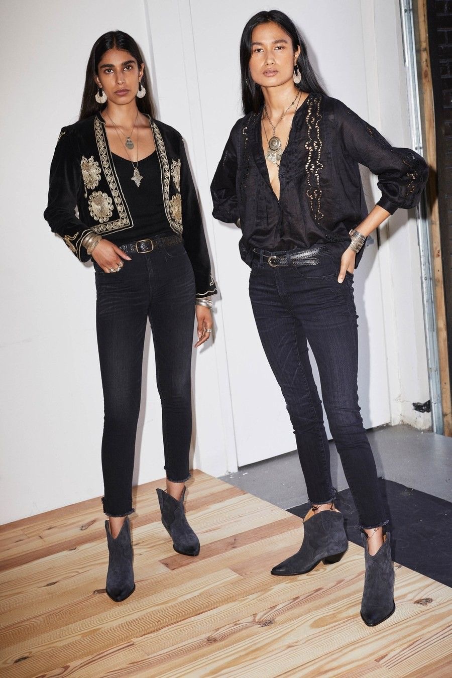 Miu Miu предлагает образ total-denim, у Saint Laurent джинсы больше напоминают леггинсы, а Balenciaga в своём стиле сочетает скинни-джинсы и верх XXL.